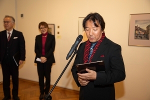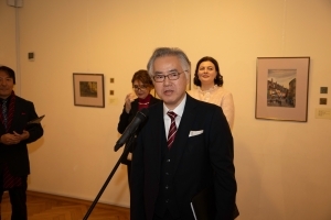 Ambassador Ishizuka delivered opening remark at the official opening of exhibition „Ichiro Kikuta - The Spirit of Sumi-e, Japanese ink Painting“