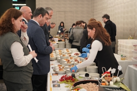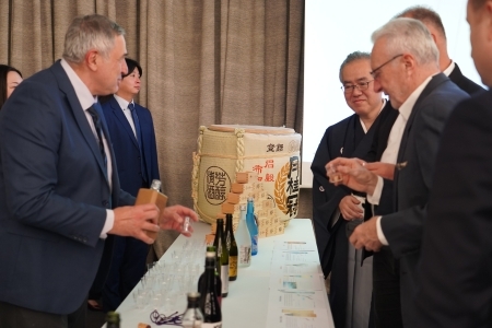 The chef of the Ambassador`s official residence conducted a sushi demonstration for the guests, while a renowned sommelier, Mr. Zaza Grigalashvili, introduced a curated selection of Japanese alcoholic beverages. Many attendees enjoyed tasting sushi, seafood directly imported from Japan, Japanese tea and a variety of sake and other selected specialities.